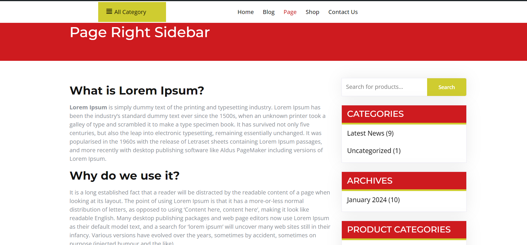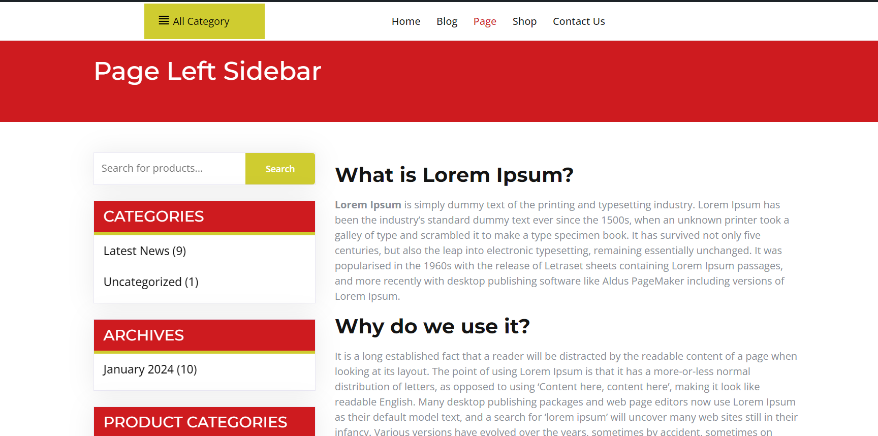 You can set page on left sidebar, right sidebar and full-width . You can choose from this options for each Theme WooCommerce Settings.