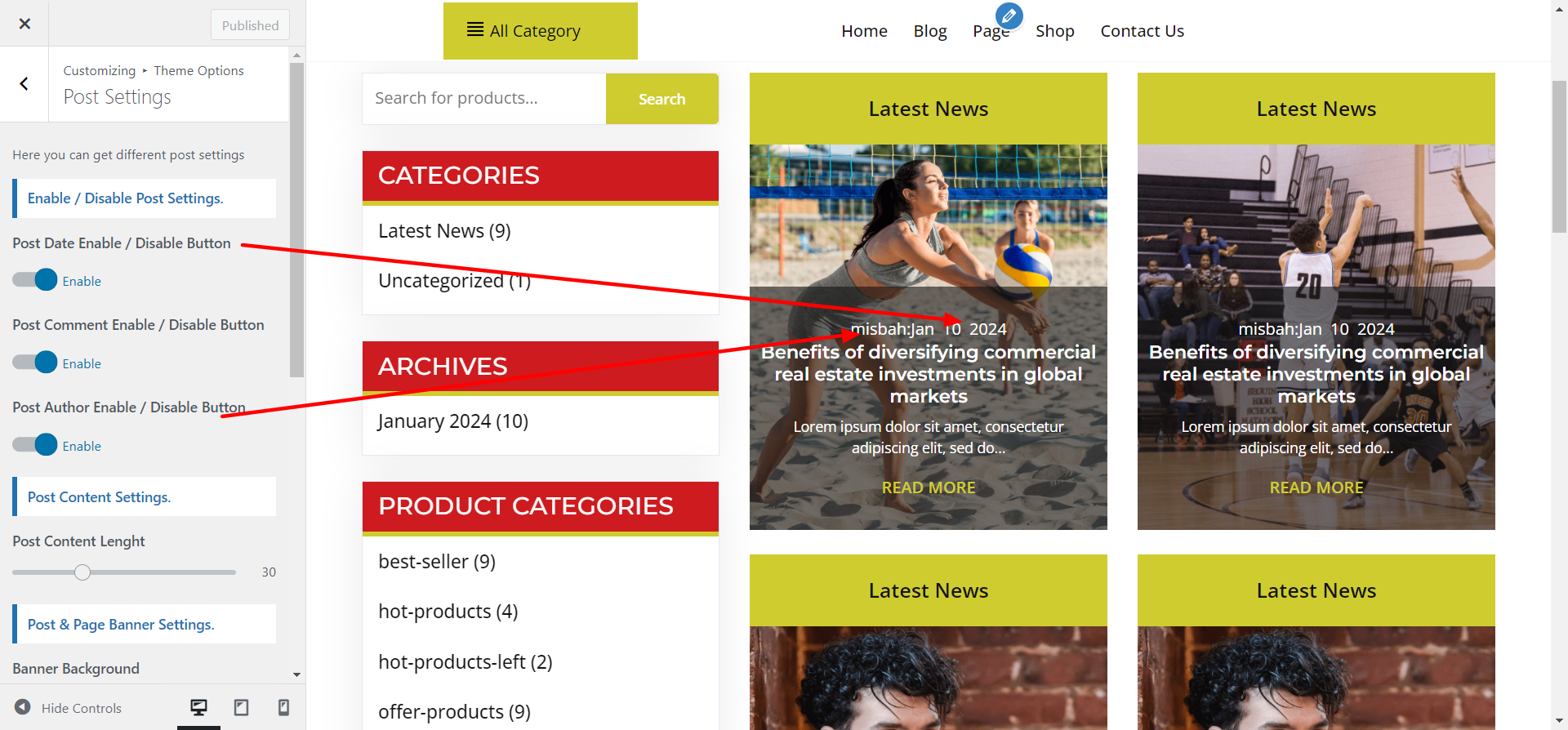 In the Dashboard, go to Appearance >> Customize >> Theme Options >> Post Settings