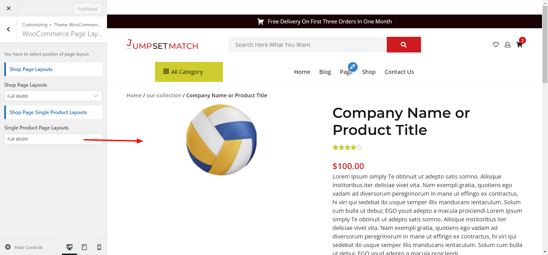 In the Dashboard, go to Appearance >> Customize >> Theme WooCommerce Settings >> WooCommerce Product
