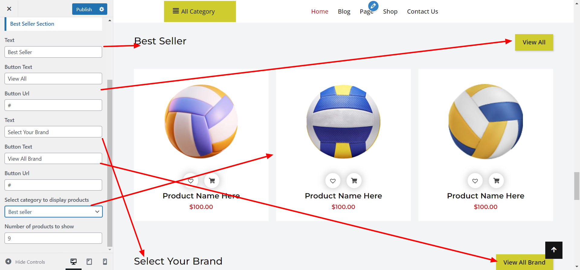 In the Dashboard, go to Appearance >> Customize >> Theme Options >> Best Seller Section Settings
