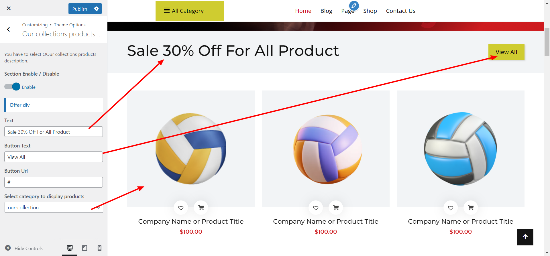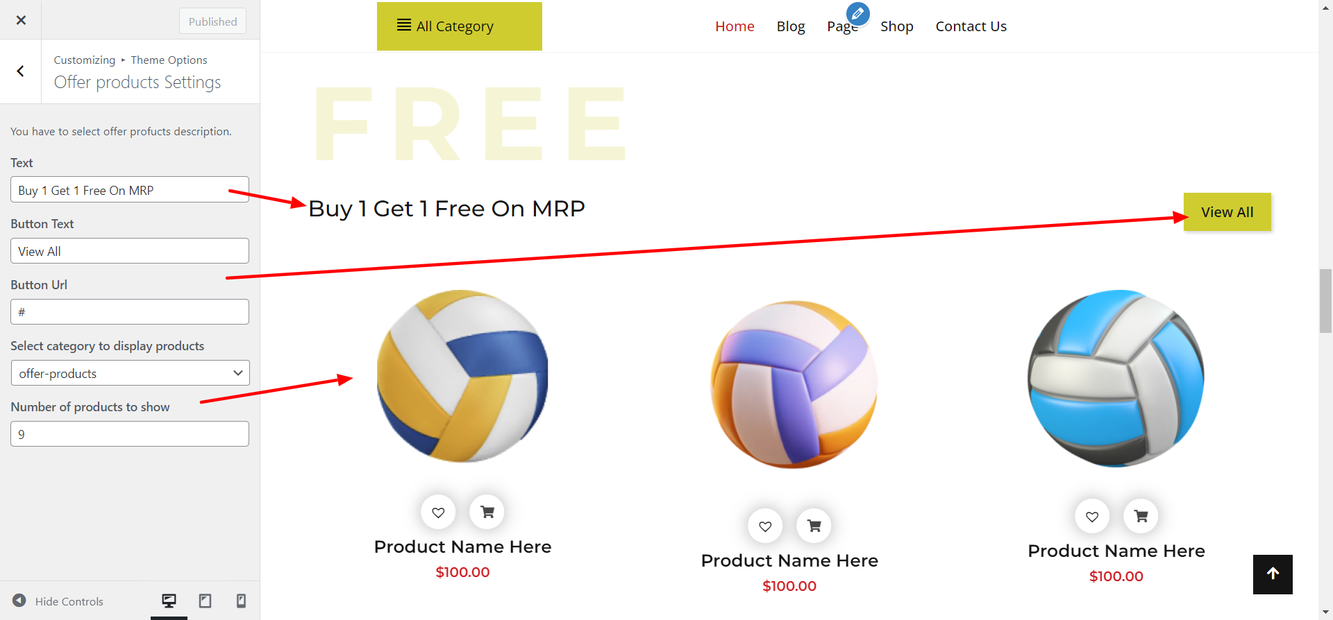 In the Dashboard, go to Appearance >> Customize >> Theme Options >> Offer Products Section Settings