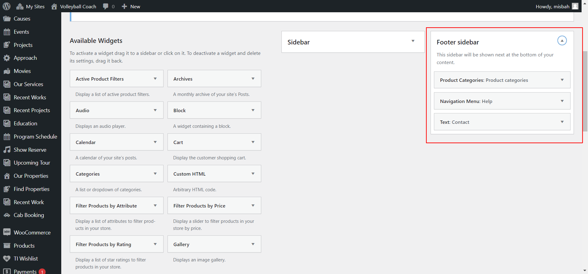 2. In the Dashboard, go to Appearance >> Widgets >> Footer Sidebar