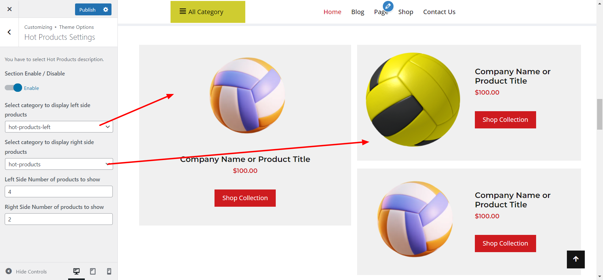 In the Dashboard, go to Appearance >> Customize >> Theme Options >> Hot Products Section Settings