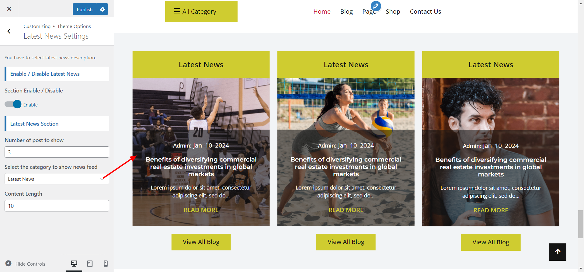 In the Dashboard, go to Appearance >> Customize >> Theme Options >> Latest Blogs Settings